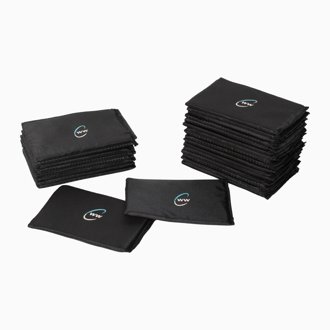 Each Weight Thin ™ is a 2 3⁄4" by 4" and weighs 1/4 pound. The weights have rounded edges and are made from a unique elastomer substrate. Each vest enclosure can house one or two weights.