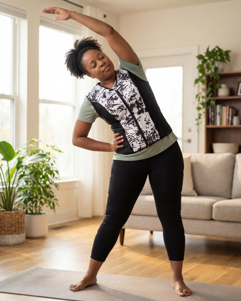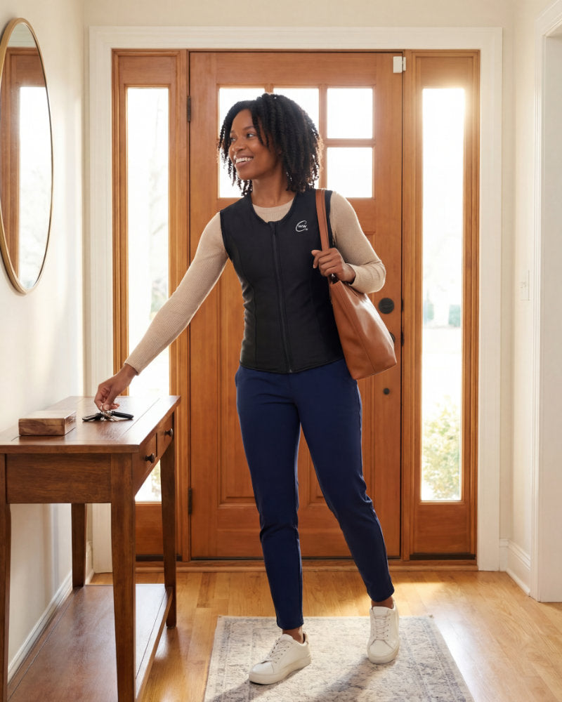 No equipment to set up. No app to open. Just put it on and move through your day. Make breakfast, tidy up, walk to the mailbox, it all adds up. You're already doing resistance training without changing a single thing about your routine.