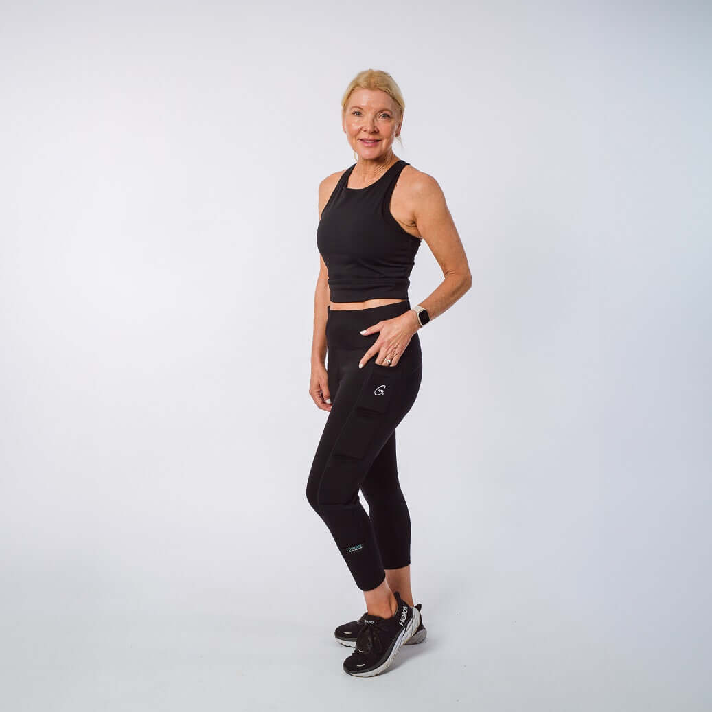 Our weighted leggings offer a new experience in women's fitness. Each pair comes with 2 1/2 lbs. to help burn calories, fight osteoporosis and tone the legs with every step, stride or jump. The sleek styling keeps you streamlined so you can wear them anywhere. These are much more than performance leggings. They're productive leggings. Buy a pair today and show your friends the future of weighted resistance training.